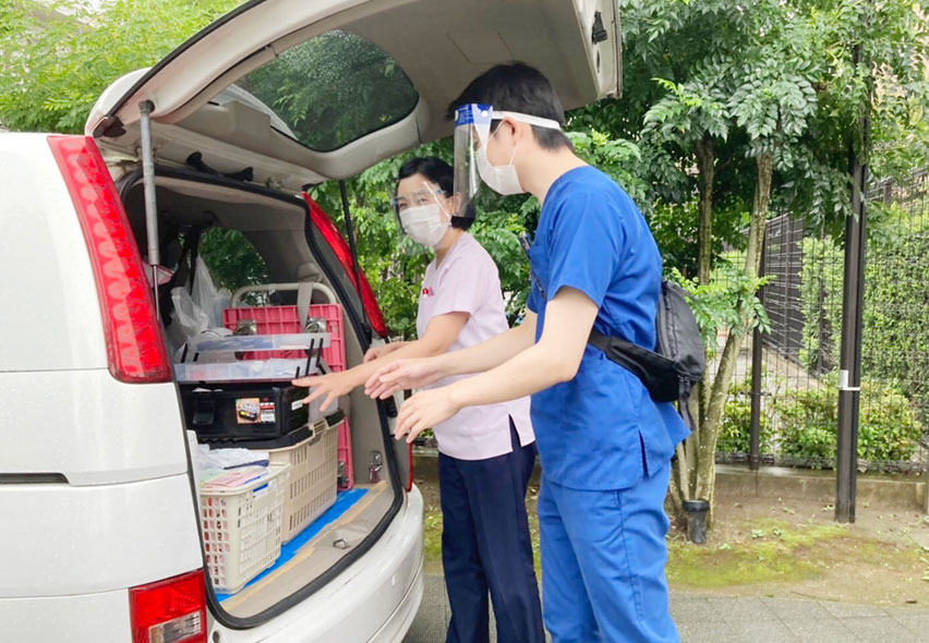 訪問専用の器材を持って、歯科医師・歯科衛生士がご自宅や入居施設へお伺いし治療を行います。